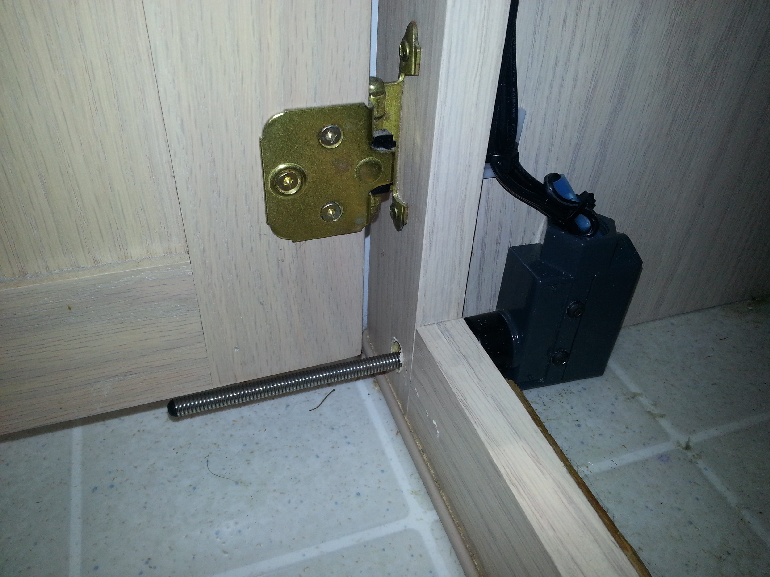 I mounted them inside the cabinets such that the spring lever protrudes through a drilled hole.  Any kind of manipulation will activate the solenoid.  Sort of a ‘mash pedal’.  Unlike foot pedal valves, this is much harder to stub my toe on.  I might find it too easy to step on, but it’s very much an experiment still.