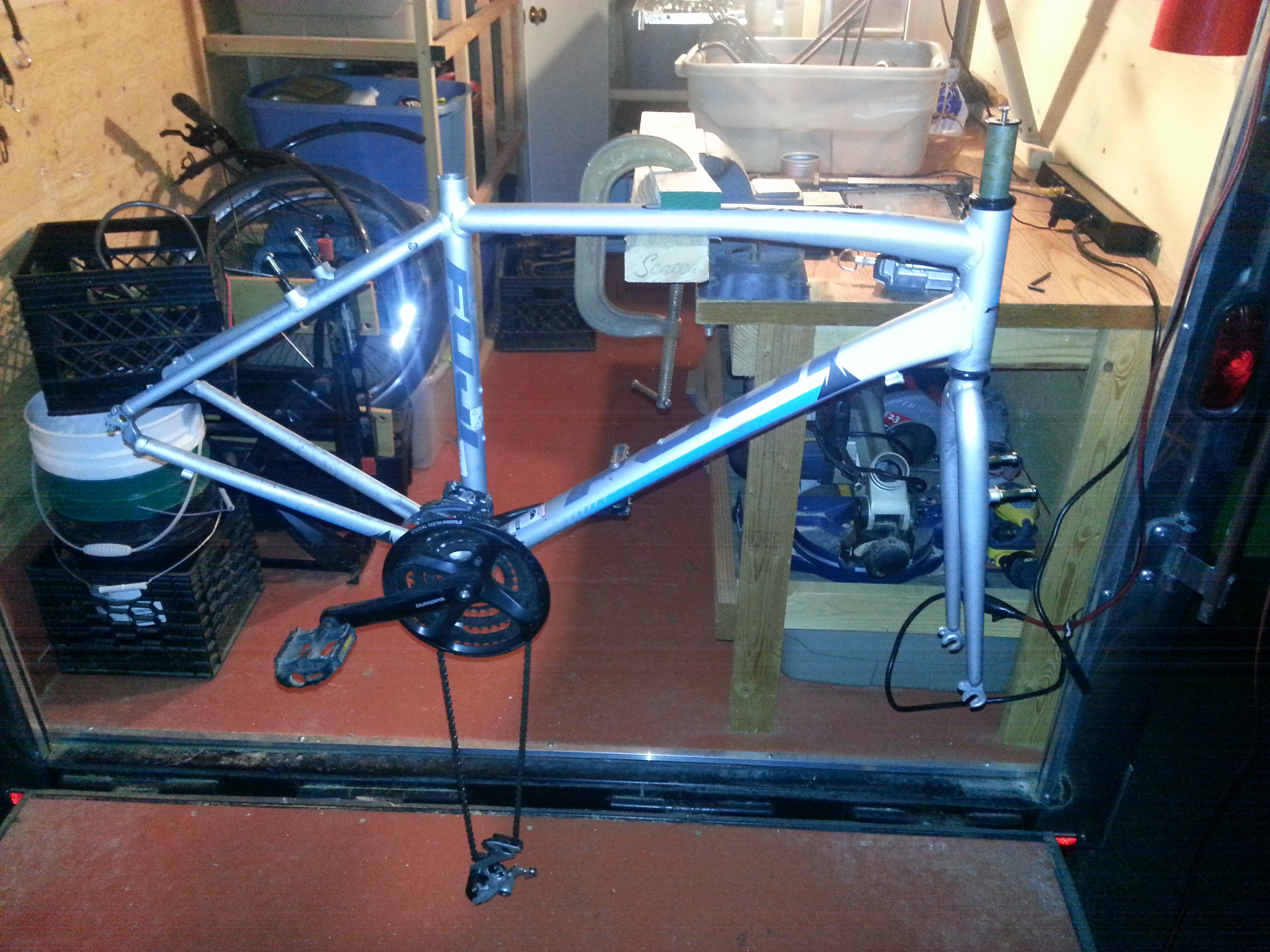 I never really cared for the silver color of the bike, so I went ahead and painted the frame with some purchased rattle can automotive paint in a color I like.  I took my time and it came out pretty well, I think.